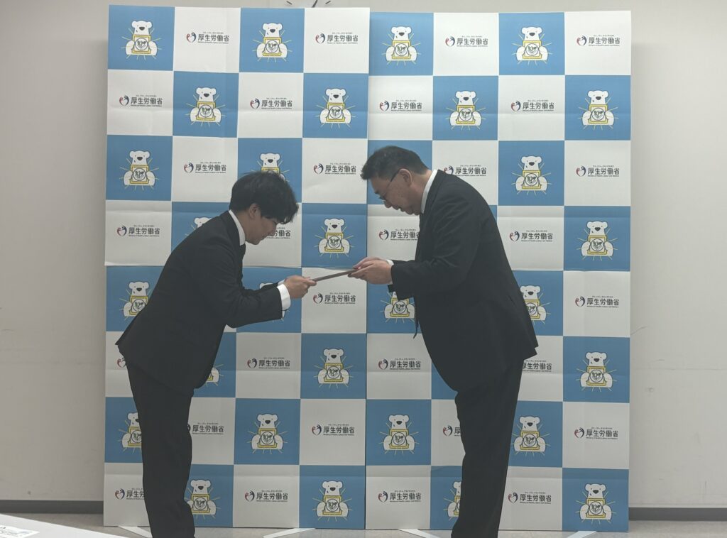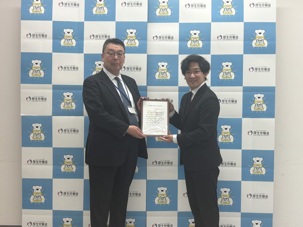 10月9日(木)に帯広公共職業安定所で行われた認定通知書交付式にて蒔田眞也所長から認定書をいただきました。